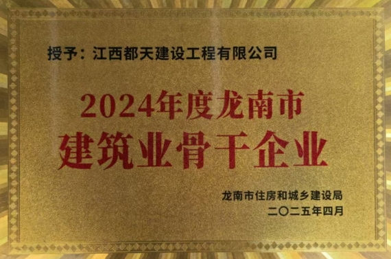 喜讯!江西都天建设工程有限公司荣膺2024年度龙南市建筑业“骨干企业”称号